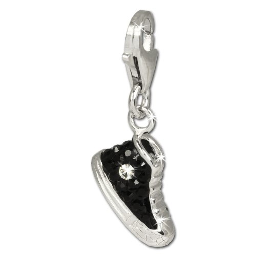 SilberDream scintillement bijoux - Charm sneaker noir - Femme - Argent 925/1000 - tchèques cristaux Preciosa - scintillement Charms - GSC515S