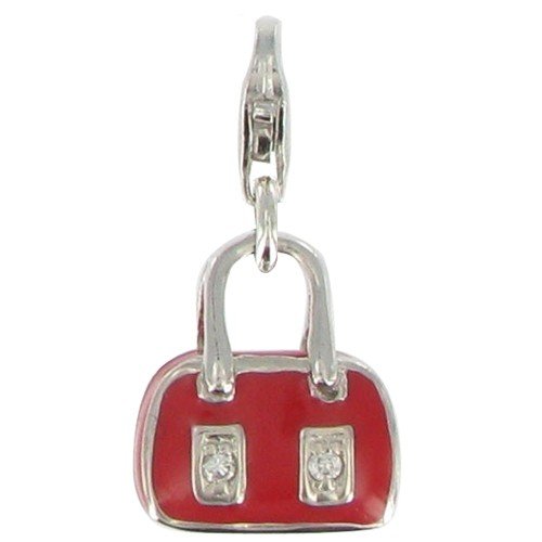 Charms Argent Sac à Main Rouge, un charms pour bracelet élégant et raffiné. Un bijou de créateur sélectionné par Stéphanie Ducauroix. Sac à Main Argent 925, émaillé Rouge, de 2.6 cm de hauteur et 1,2 cm de largeur, relié à son mousqueton argent, prêt à rejoindre son bracelet charms. Bijou Charms livré dans son écrin Les Poulettes.