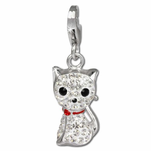 SilberDream Scintillement Bijoux Collection SilberDream scintillement bijoux Charms - Pendentif Charm chat blanc en argent 925 avec tchèques cristaux Preciosa