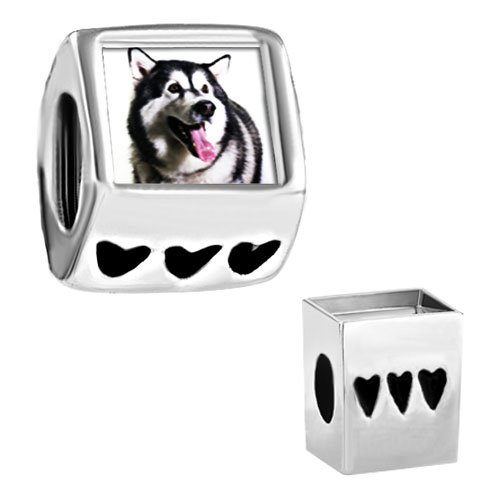 Nothing makes life seem so special as a cute animal, and the graceful black and white pup on this Husky Dog Heart European Bead is one of the cutest you will ever see. Whether you will be using this bead to add to your own Heart European Bead bracelet, or want to give it as a gift to a close friend or family member who loves dogs, you surely cannot go wrong with something this adorable. The photo design of the bead's face is soldered onto the stainless steel base of this durable link. All Pugster beads Fit Pandora, Biagi, Chamilia, and Oriana beads! NOTE: Pictured chain is not included.