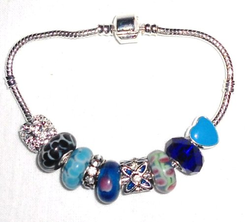 - Style 925 bracelet Pandora en argent charme, avec un fermoir sécurisé homard, 9 qualité supérieure en verre de Murano, cristal et perles strass, de qualité supérieure et de style 20-21cm de long
